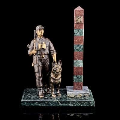 10812 Бронза Статуэтка «На посту» змеевик, Лемизит (4.40)
