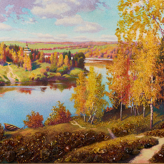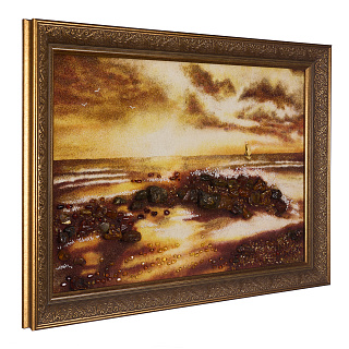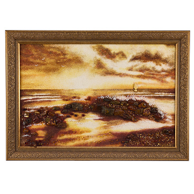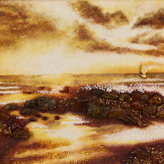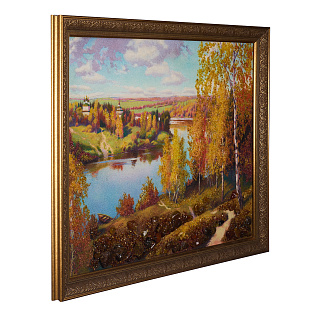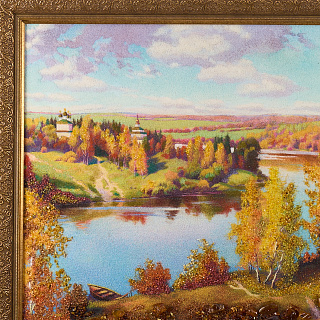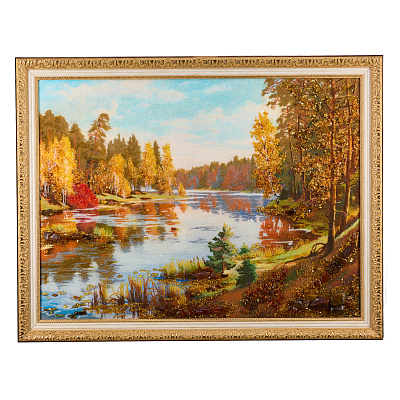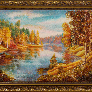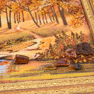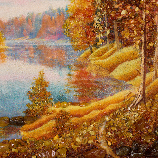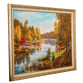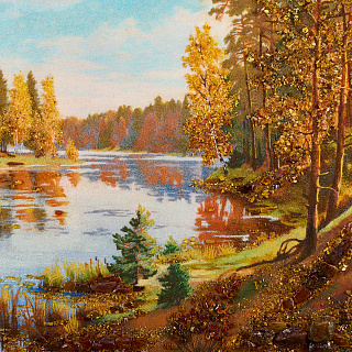 Картина янтарная «Пейзаж. Солнечный день на речке» 30х40 см