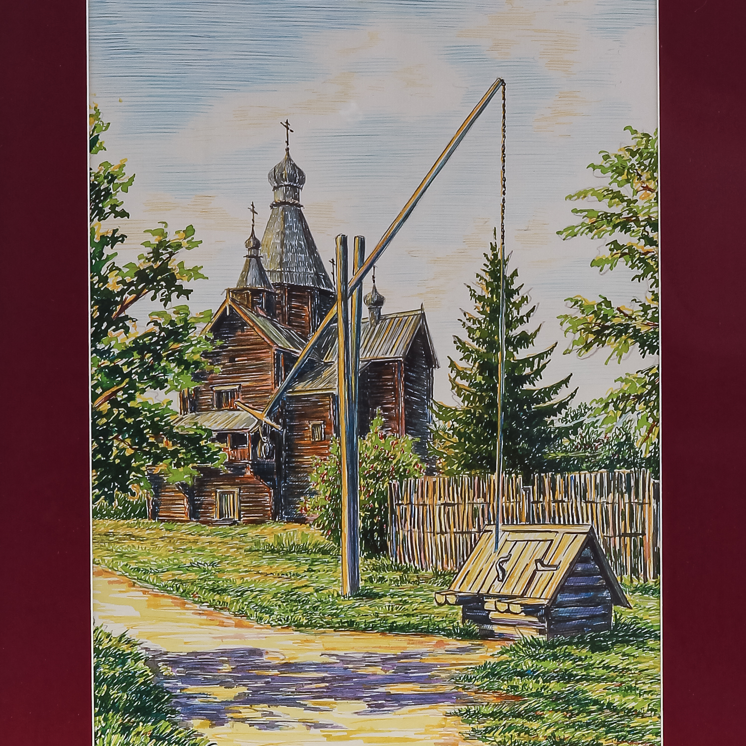 Картина "Деревянный мотив. Витославицы под Новгородом".