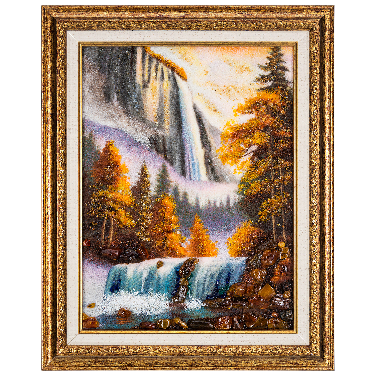 Картина янтарная «Горный водопад» 30х40 см