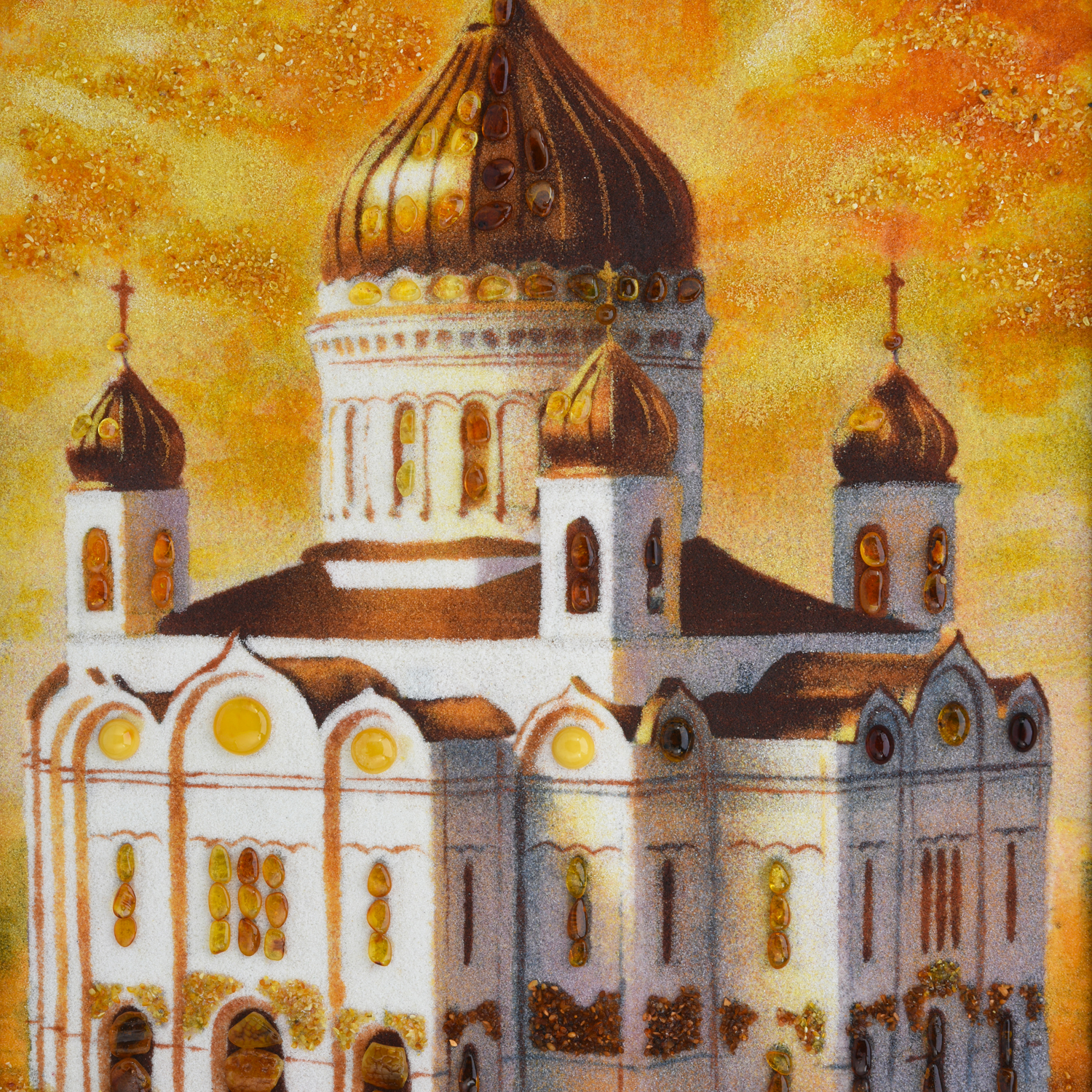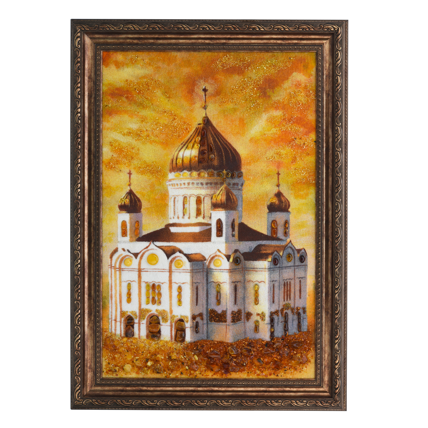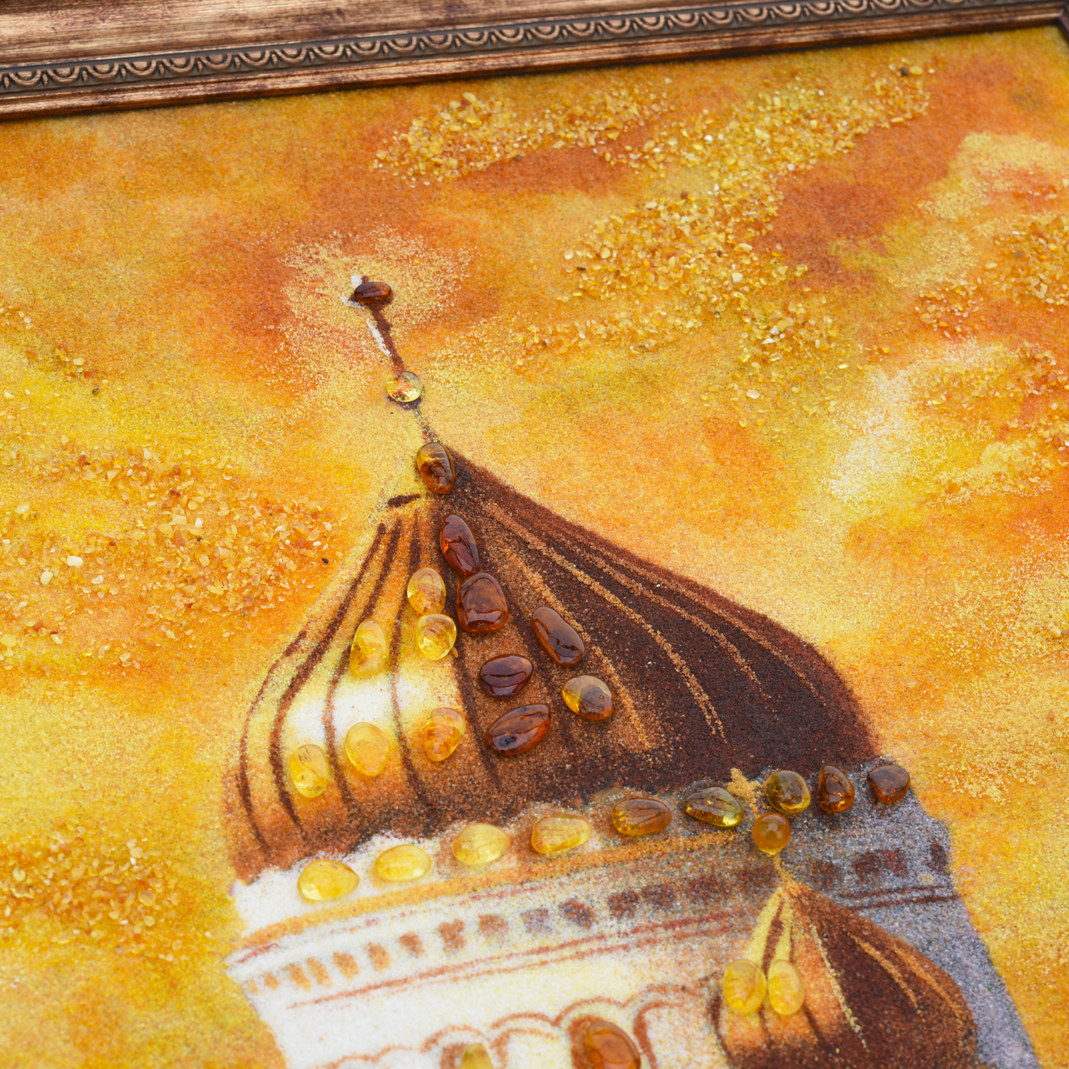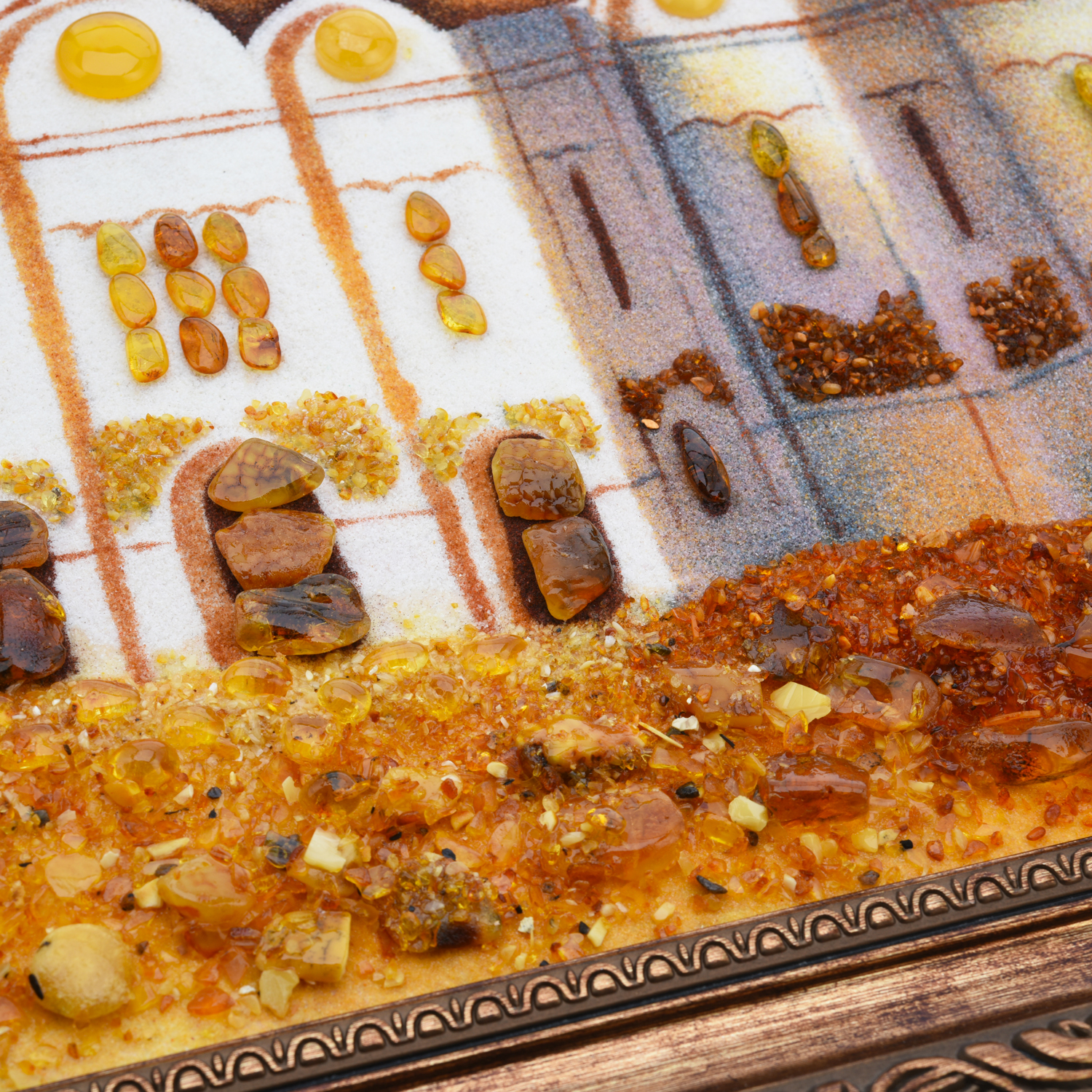 Материалы: фанера, краски, лак, янтарь, багетная рама.