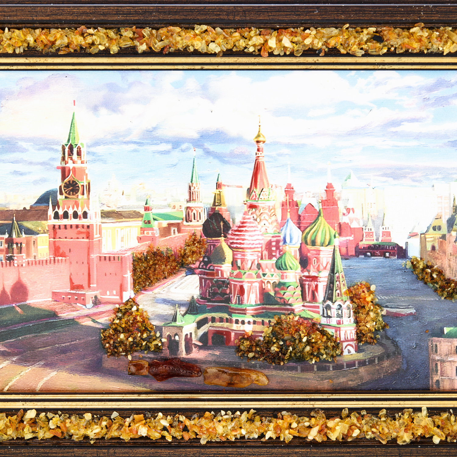Картина янтарная «Храм Василия Блаженного» 24х15 см