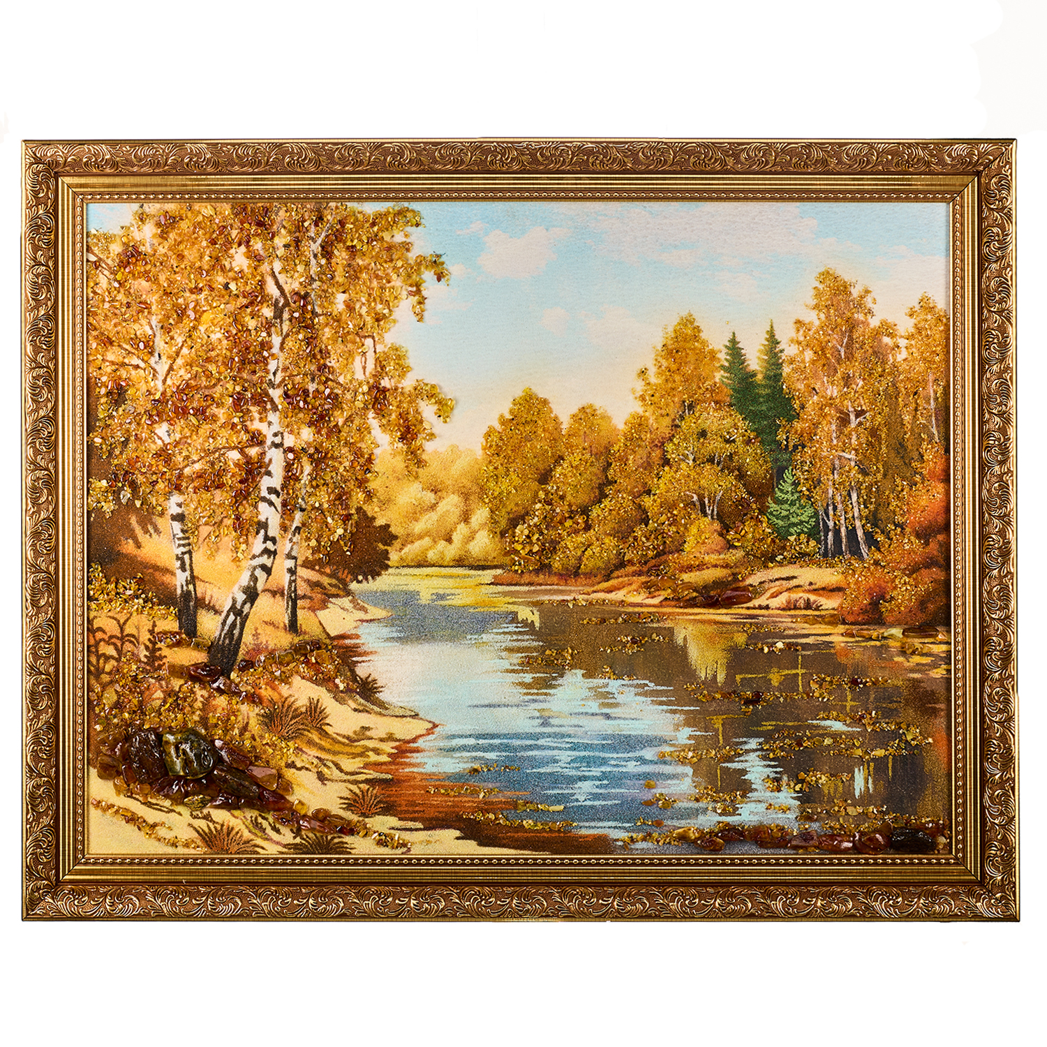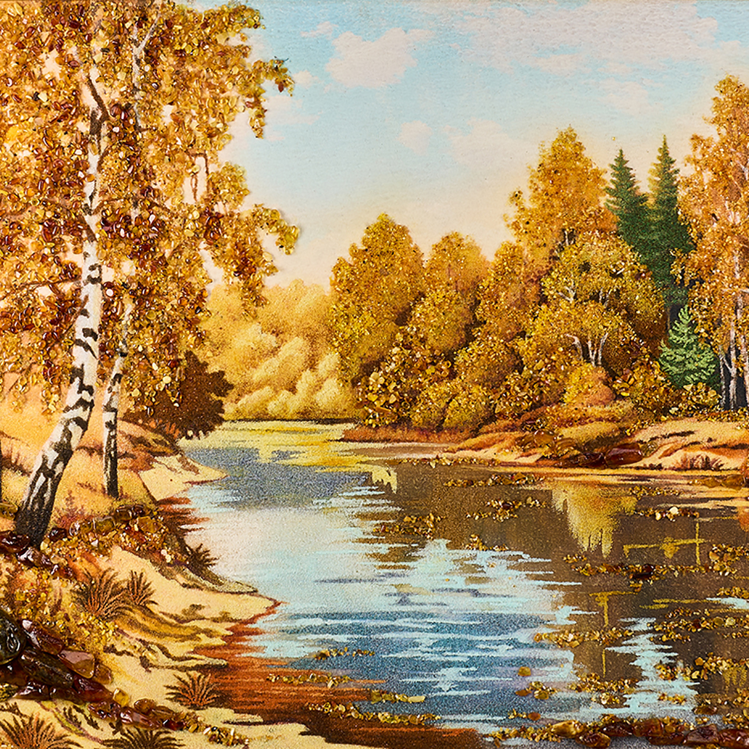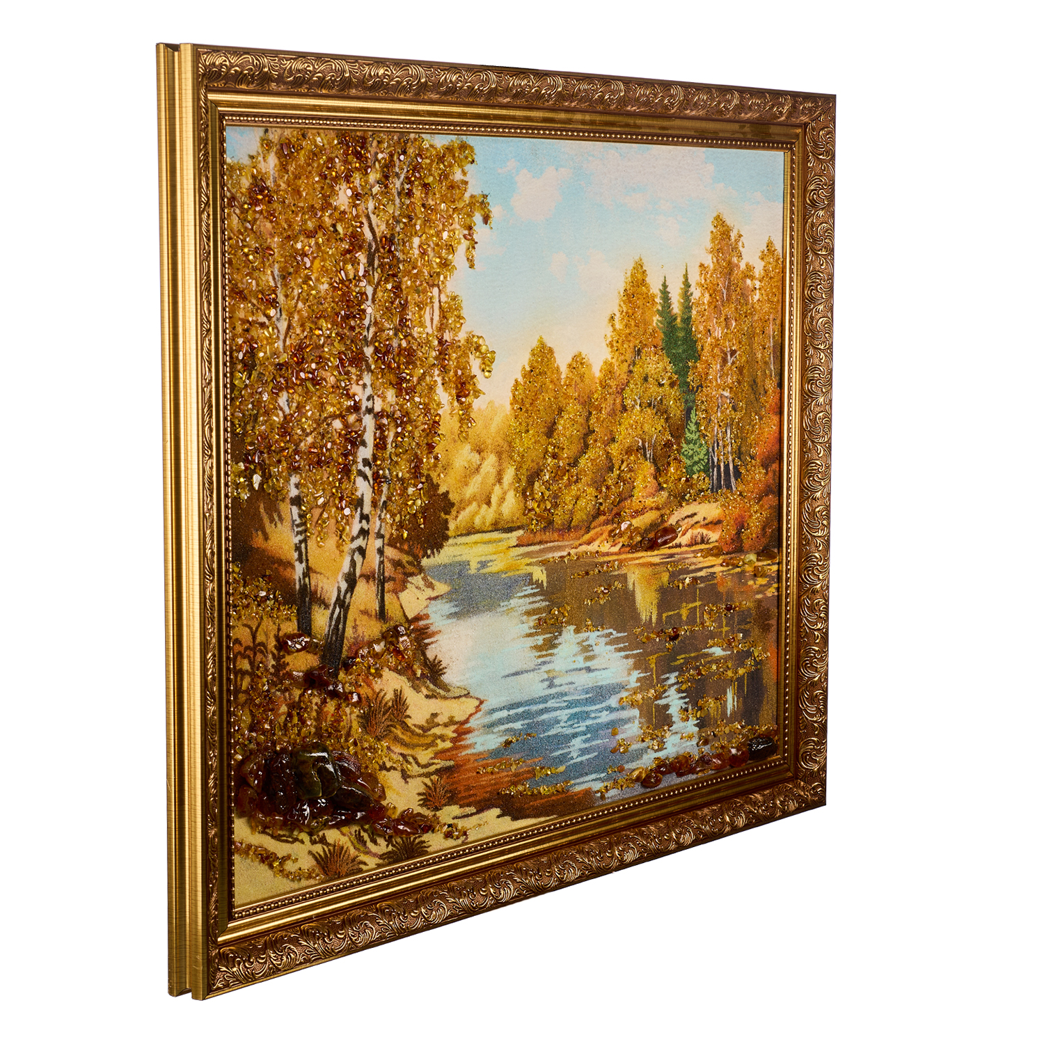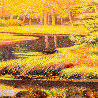 Картина янтарная «Озеро в лесу» 60х80 см