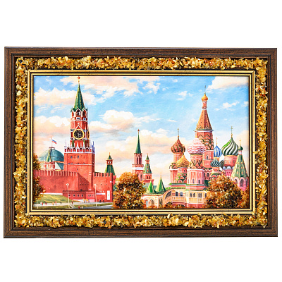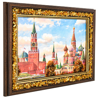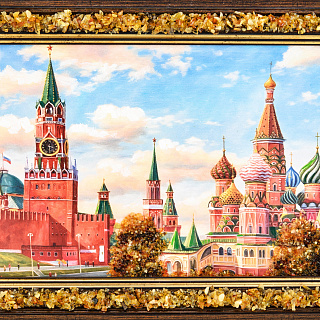 Картина янтарная «Храм Василия Блаженного» 24х15 см