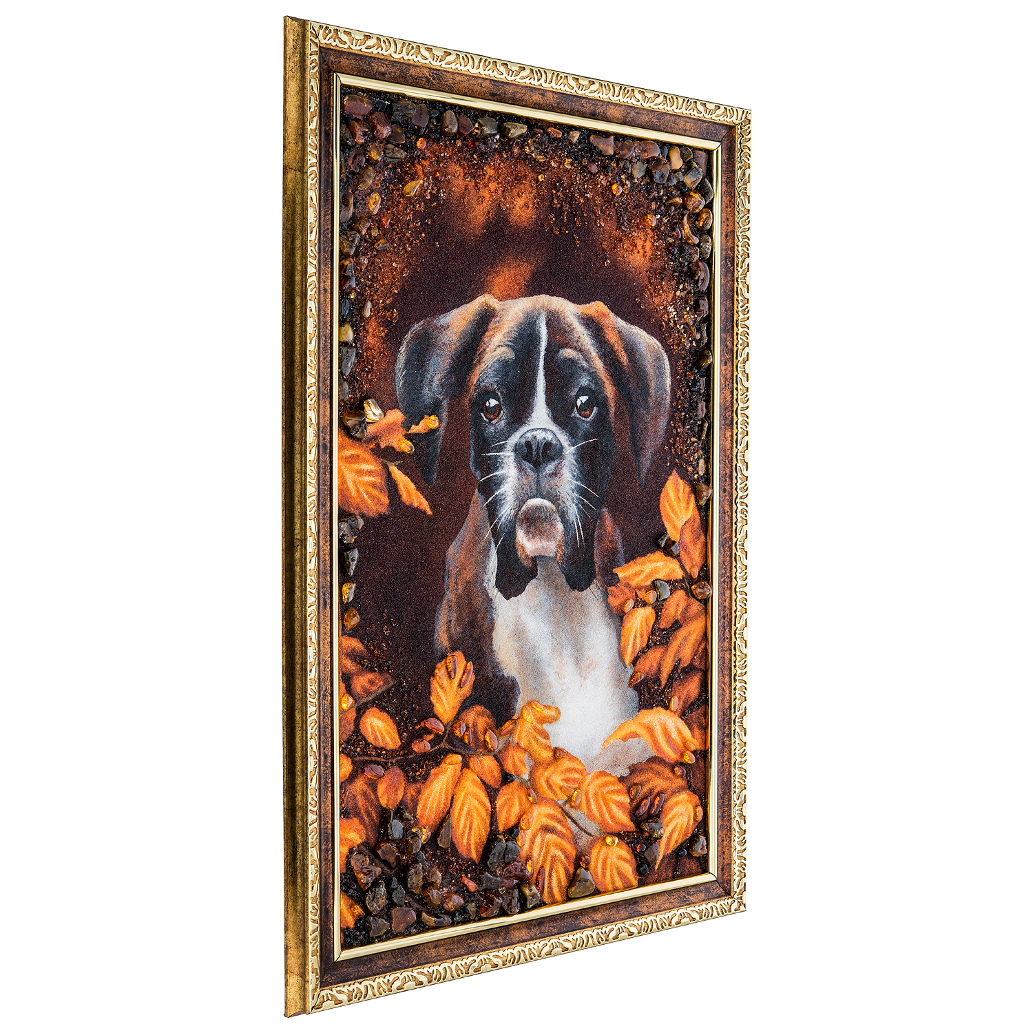 Материалы: фанера, краски, янтарь, багетная рама.