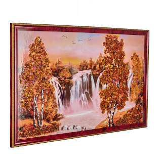 Картина янтарная «Пейзаж с рекой» 60х40 см