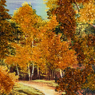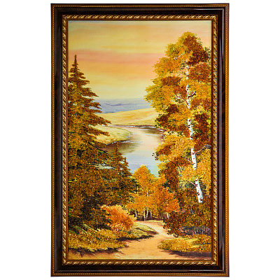 Картина янтарная «Пейзаж с рекой» 60х40 см