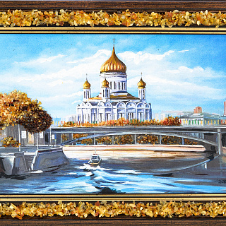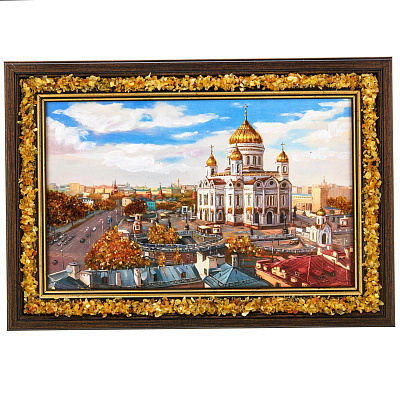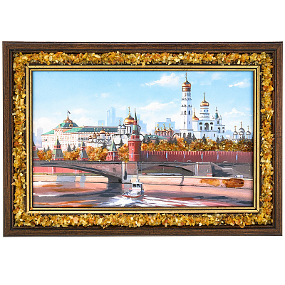 Картина янтарная «Вид на Кремль и Храм Василия Блаженного» 60х80 см