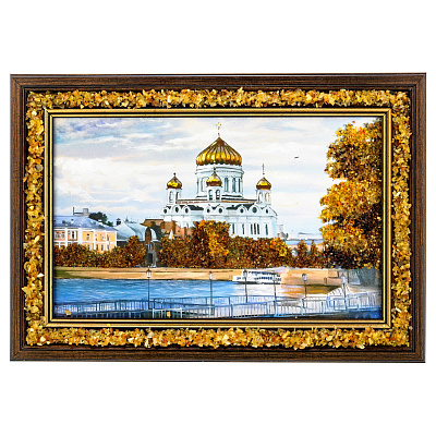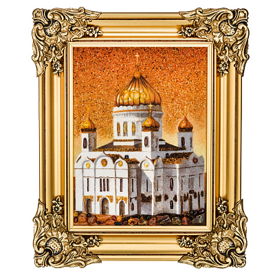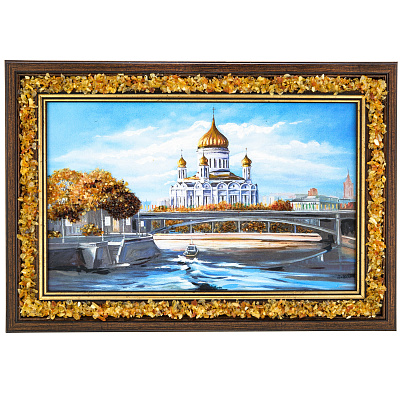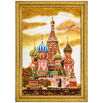 Картина янтарная в багете «Храм Василия Блаженного» 30х40 см