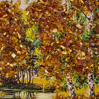 Картина янтарная «Осеннее настроение. Березки» 60х40 см