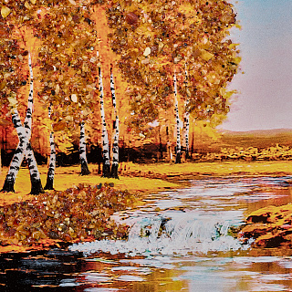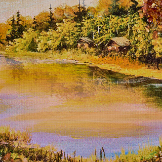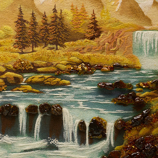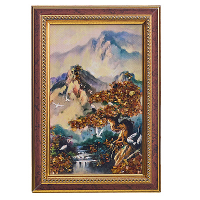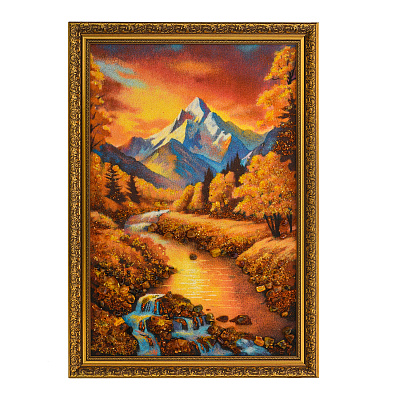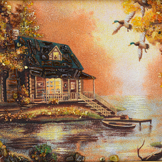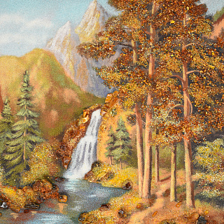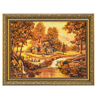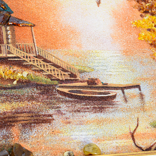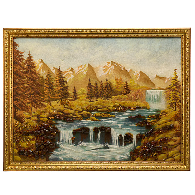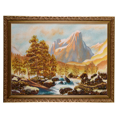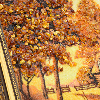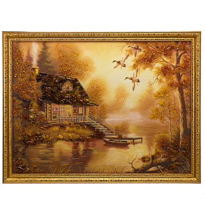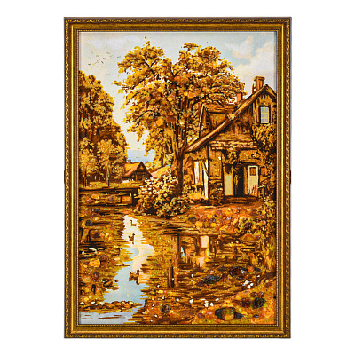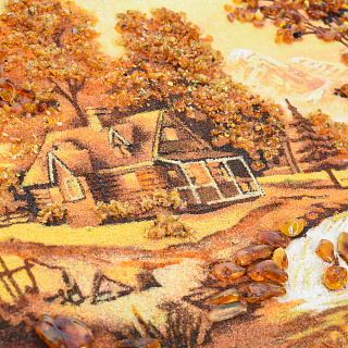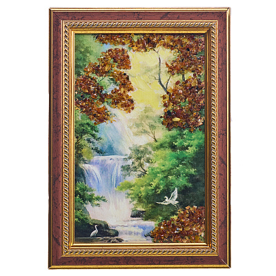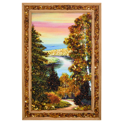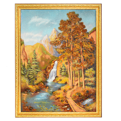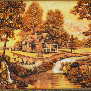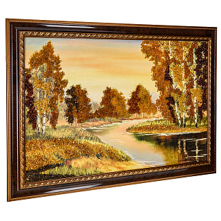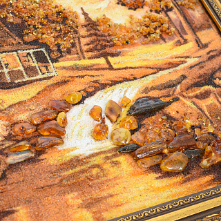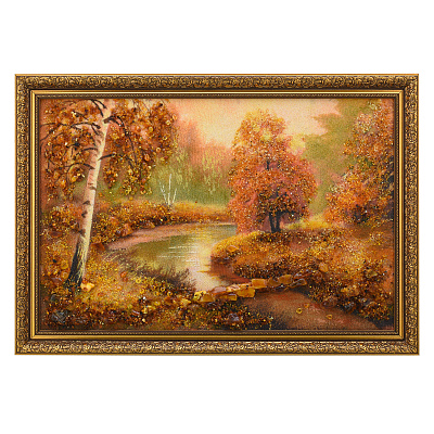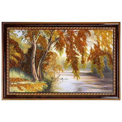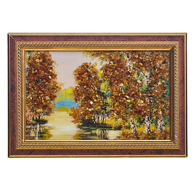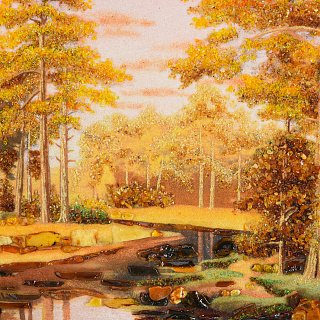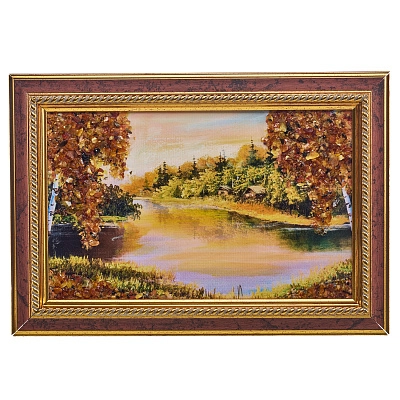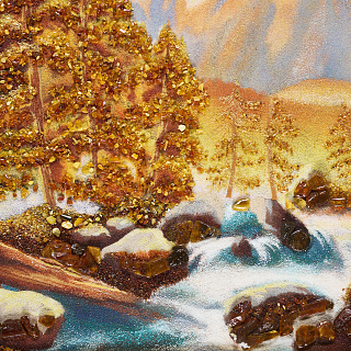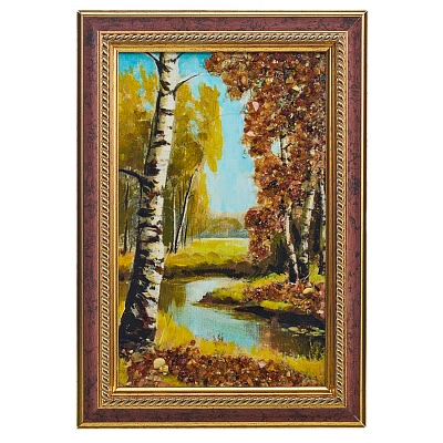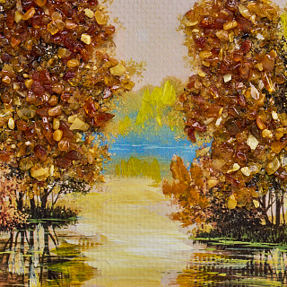 Картина янтарная «Пейзаж. Солнечный день на речке» 30х40 см