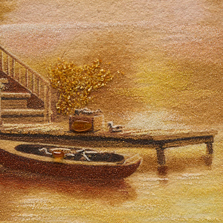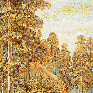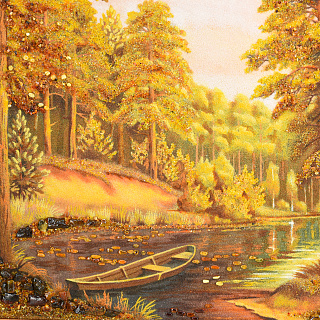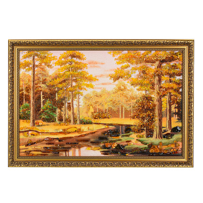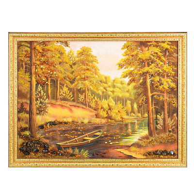 Картина янтарная «Лодка в сосновом лесу» 60х80 см