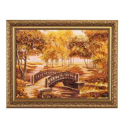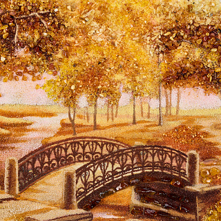 Картина янтарная «Осень в парке. Мостик» 30х40 см