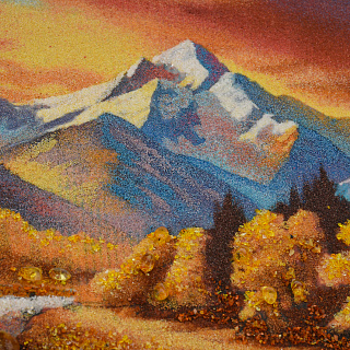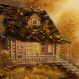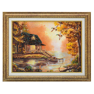 Картина янтарная «Осенний пейзаж. Храм» 60х40 см