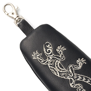 Ключница «Ящер». Темно-синяя с вышивкой