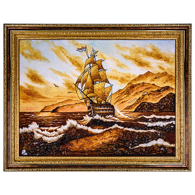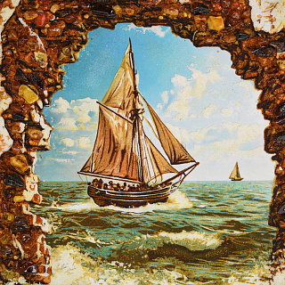 Панно из кости «Санта Мария - корабль Колумба» 31 х 31 см