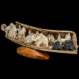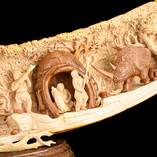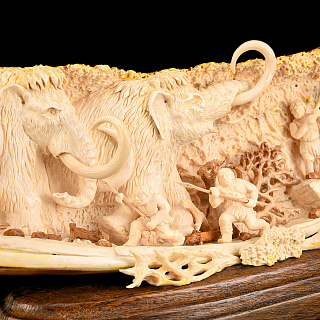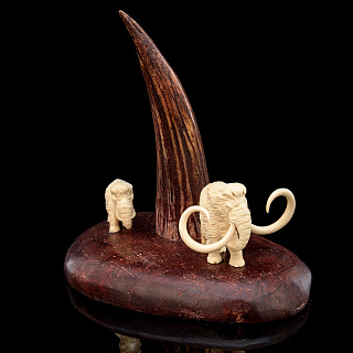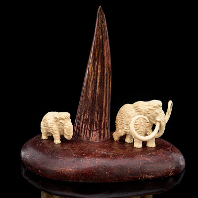 Скульптура из бивня мамонта и рога лося «Хозяин, ты скоро?»