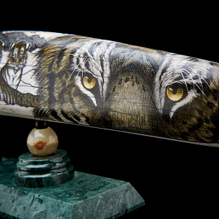Подставка под ручку со скульптурой из рога лося и кости мамонта «Медведь»