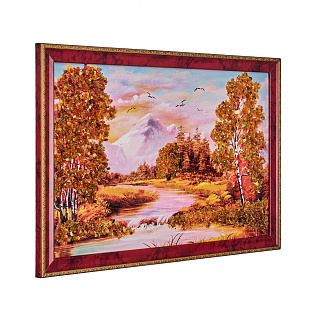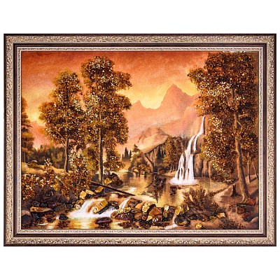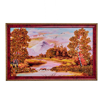 Картина янтарная «Пейзаж. Солнечный день на речке» 30х40 см
