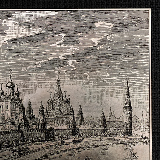 Офорт черно-белый «Вид на Кремль. Старая Москва» 25х32 см