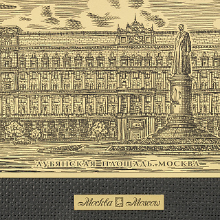 Офорт черно-белый «Лубянская площадь. Москва» 27х55 см