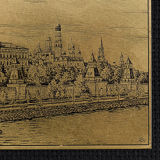 Офорт черно-белый «Москва. Кремлевская набережная» 25х32 см