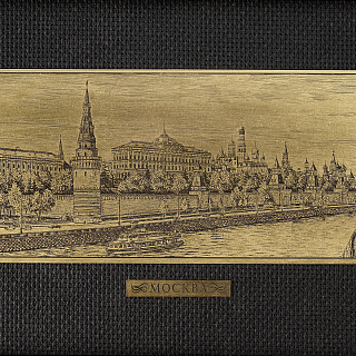 Офорт черно-белый «Вид на Кремль с Большого Москворецкого моста» 27х55 см