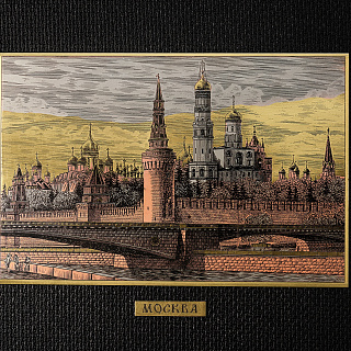 Офорт цветной «Кремль. Большой Москворецкий мост» 27х55 см