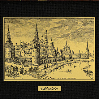 Офорт черно-белый «Вид на Кремль. Старая Москва» 17х22 см