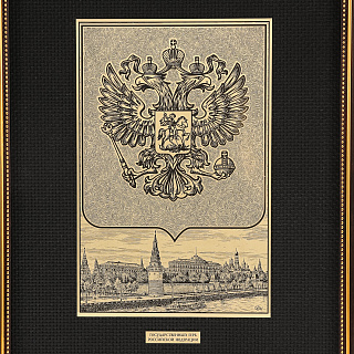 Офорт чёрно-белый «Герб РФ» 17х22 см