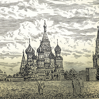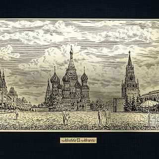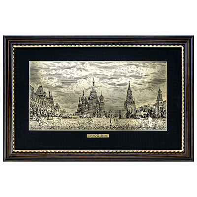 Офорт черно-белый «Старая Москва. Красная площадь» 21х40 см