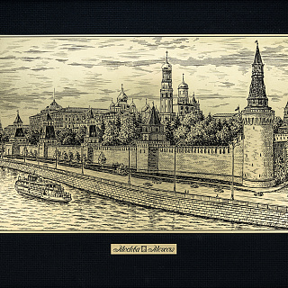 Офорт черно-белый «Москва. Кремлевская набережная» 25х32 см
