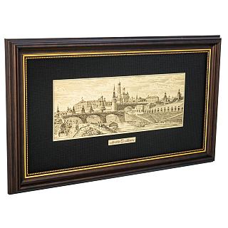 Офорт черно-белый «Вид на Кремль с Большого Москворецкого моста» 27х55 см