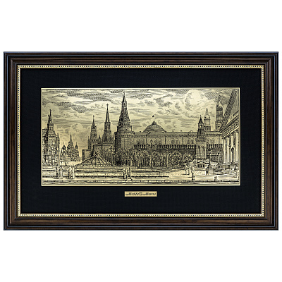 Офорт черно-белый «Васильевский спуск. Кремль» 18х32 см