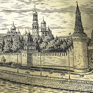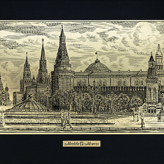 Офорт цветной «Старая-Москва. Общий вид Кремля» 42х55 см