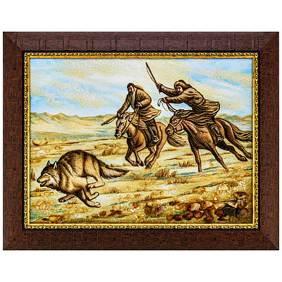 Панно-гравюра «Охотники на привале». Златоуст 36х26 см