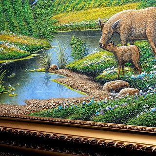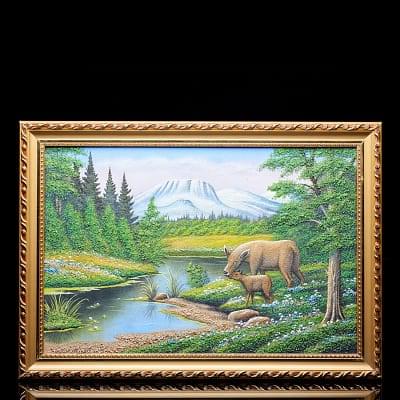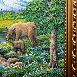Картина с каменной крошкой «Олени на водоеме» 69 х 49 см