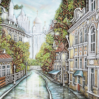 Панно «Храм Василия Блаженного». Хохлома 66,5 х 69 см