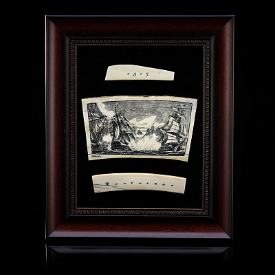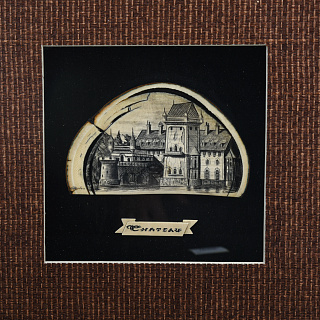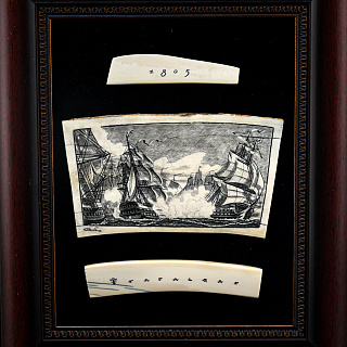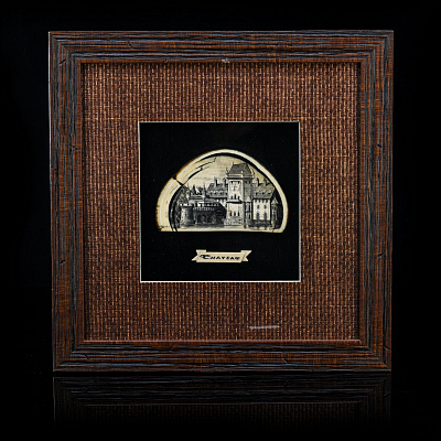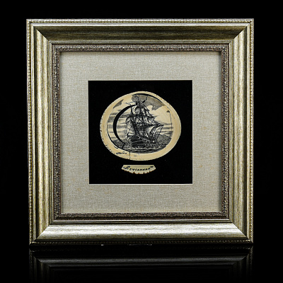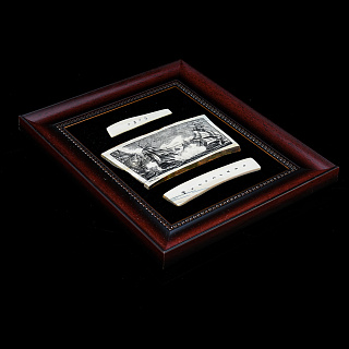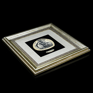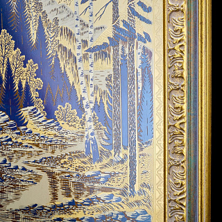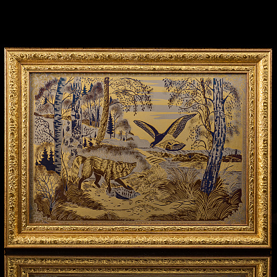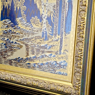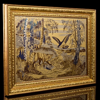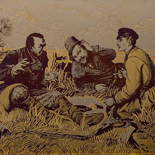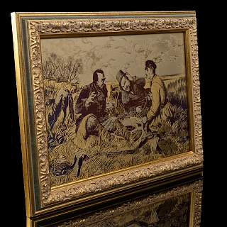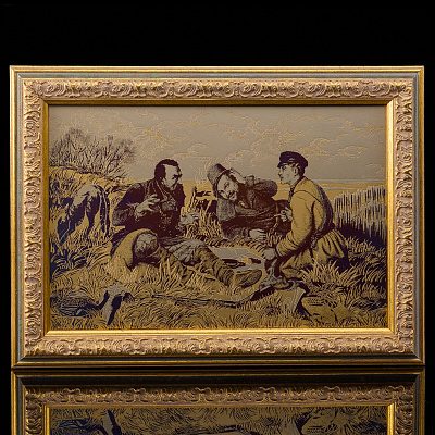 Панно-гравюра «Охотники на привале». Златоуст 36х26 см