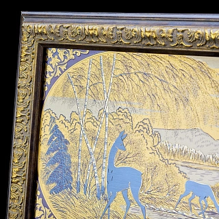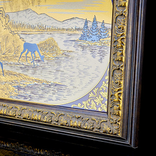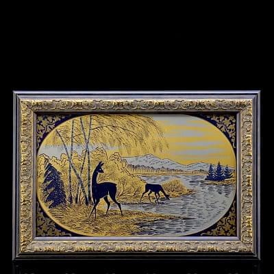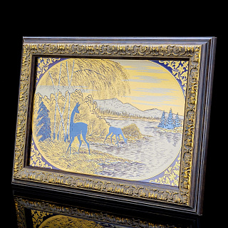 Панно «На водопое». Гравюра Златоуст 30 х 20 см 35х25 см