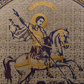 Панно-гравюра «Георгий Победоносец». Златоуст 28х33 см
