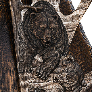 Настенная композиция из рога лося «Охота на медведя»