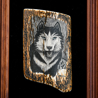 Панно из бивня мамонта «Волк» 20х25 см