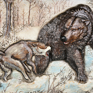 Панно из дерева «Кубанский пейзаж» резное 36 х 36 см