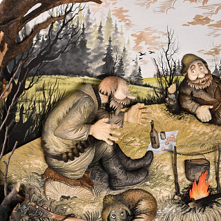 Панно из дерева «Замок с кораблем» 95 х 59,5 см