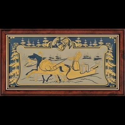 Панно-гравюра «Охотники на привале». Златоуст 36х26 см