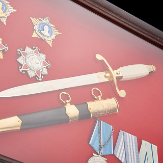 Панно«Коллаж »Кортик офицерский и ордена ВОВ" 48 х 31 см