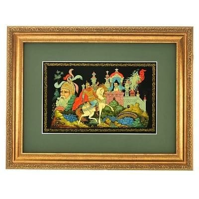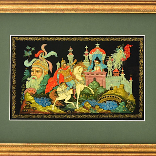 Лаковая миниатюра Панно из папье-маше «Руслан и голова» Палех 45 х 33 см