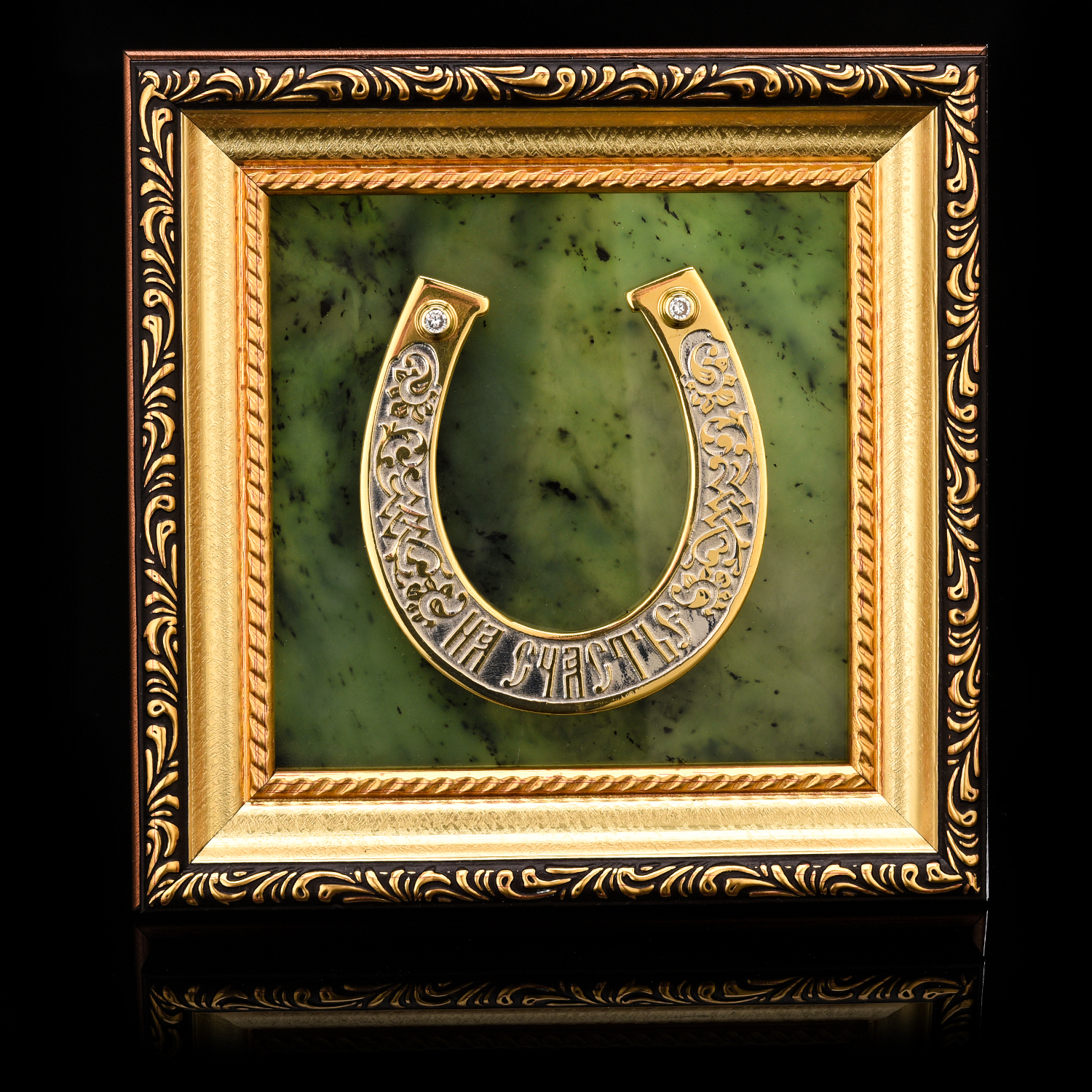 Материалы: латунь, никель, золото 999,9*, нефрит.