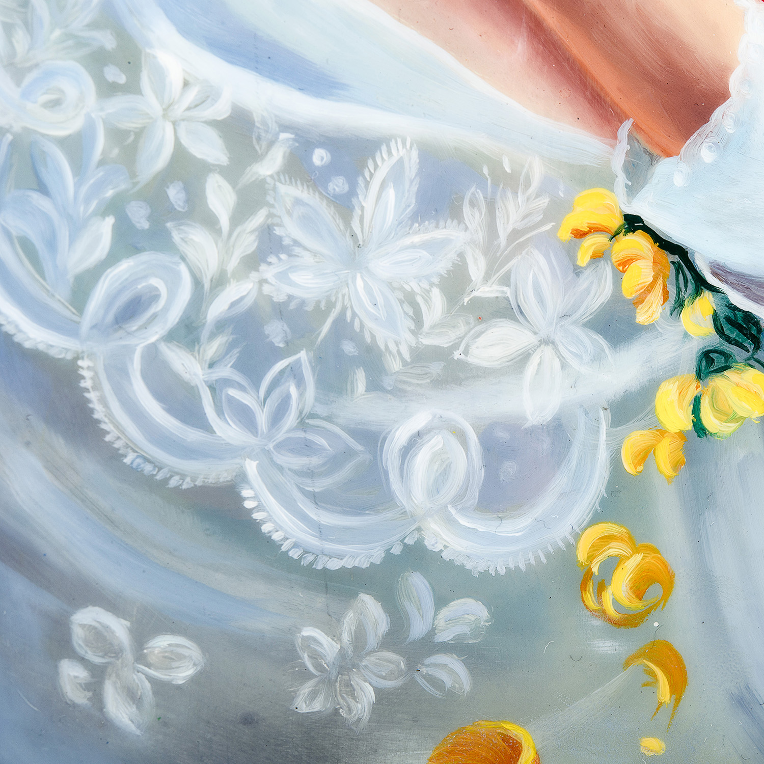 Красочная, легкая очень нежная композиция ручной работы - классический пример русской лаковой миниатюры. Работа создана вручную в соответствии со старинными методами русского искусства. Основа панно изготовлена в технике папье-маше. Роспись нанесена в технике трехслойного письма - последовательное создание рисунка - темперными красками. Работа отличается высокой детализацией, объемностью и реалистичностью. Особый упор в работе над панно художник сделал на проработку мелких деталей, что позволило добиться фантастического эффекта.